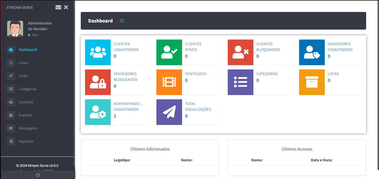 Painel para gerenciamento de IPTV Xtream Server 3.0