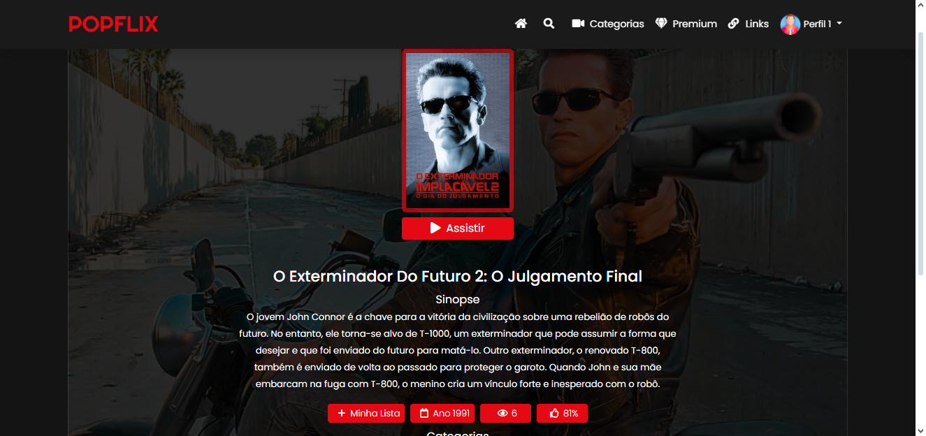 O sistema também deixamos nos campos de URL clicável, após clicar o filme ou a série irá abrir em seu navegador.